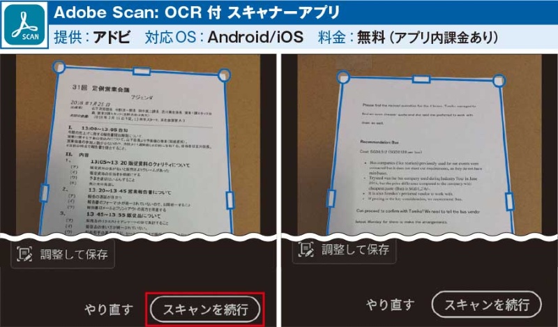 Adobe Scanの無料版の機能