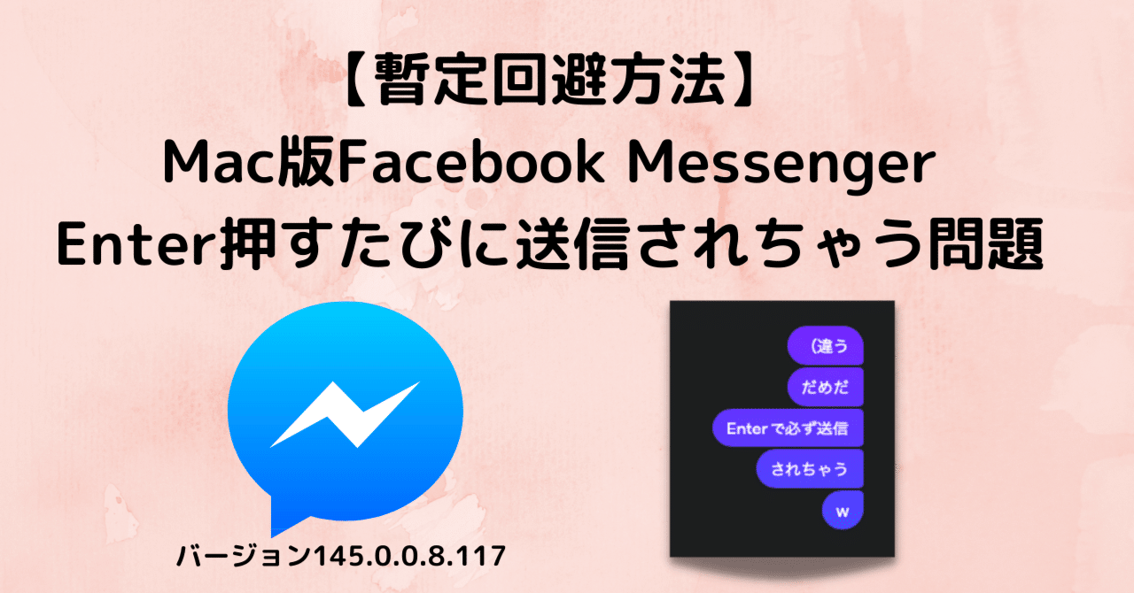 Facebookメッセンジャーでは、改行するためには、Shift + Enterキーを押す必要があります。Enterキーひとつで送信されてしまうため、注意しておく必要があります。